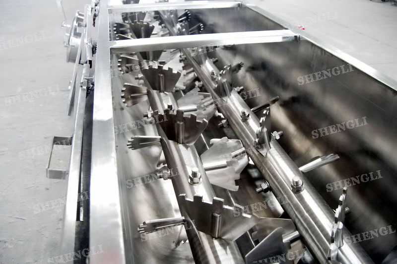 描述:雙軸連續(xù)式攪拌機(jī)采用雙軸交叉結(jié)構(gòu),通過(guò)重疊的嚙合空間,結(jié)合斷續(xù)的螺旋葉片,能夠快速混合物料,該設(shè)備臥式安裝,進(jìn)行連續(xù)式生產(chǎn)模式,需要持續(xù)的供料來(lái)實(shí)現(xiàn)持續(xù)的產(chǎn)出,上蓋采用快捷密封,便于物料清理以及衛(wèi)生控制。