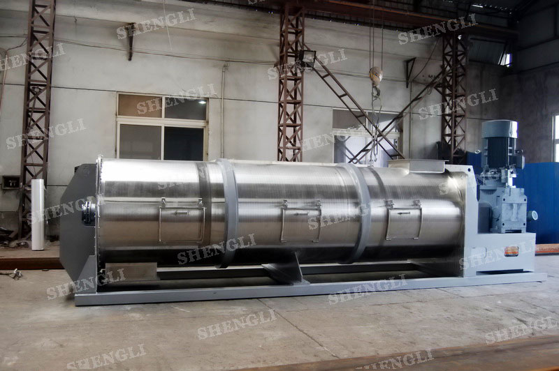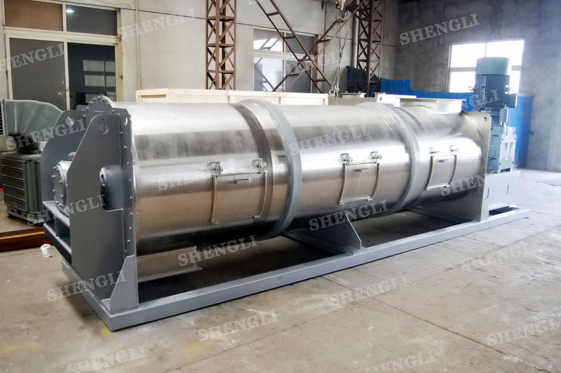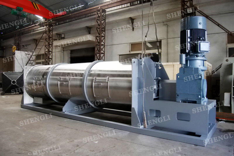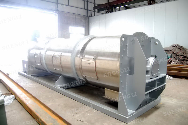 描述:連續(xù)式犁刀混合機臥式安裝,進行連續(xù)式生產(chǎn)模式,內(nèi)部配置犁刀能夠有效分散、混合物料。設備主軸采用填料密封,配置基礎安裝框架,桶側(cè)開設檢修門。