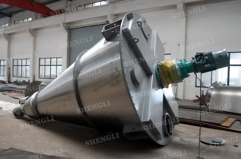 描述:雙螺旋錐形混合機內(nèi)部安裝非對稱傾斜螺旋,雙螺旋自身旋轉(zhuǎn),提升物料,并有公轉(zhuǎn)減速箱驅(qū)動,沿錐體中心軸公轉(zhuǎn),360度攪拌物料,擁有非破壞性攪拌以及快速且無殘留卸料的特點。該設(shè)備配置自轉(zhuǎn)、公轉(zhuǎn)一體式,內(nèi)外表面做拉絲處理,筒體底部配置氣動球面閥,開設(shè)投料口、排氣口等。