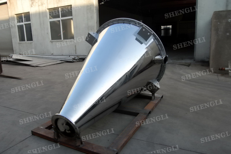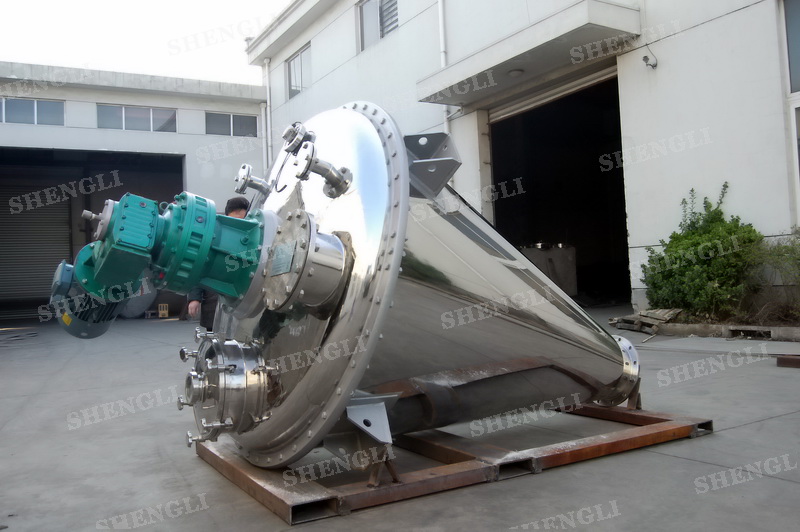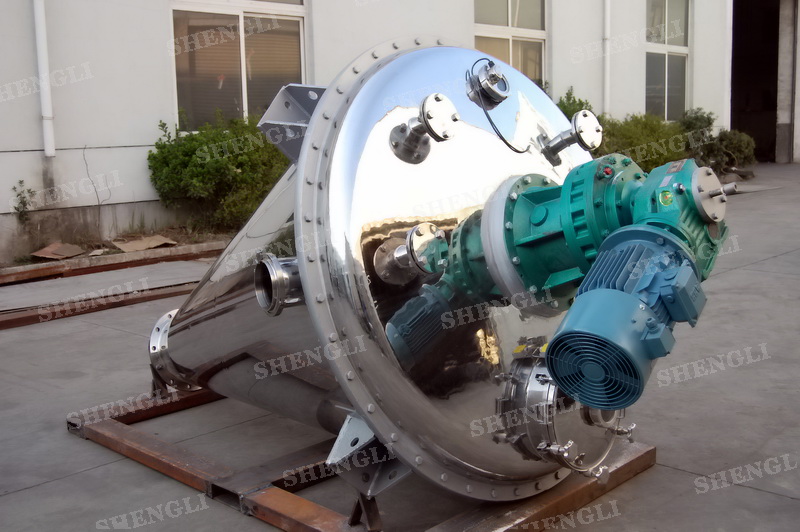 描述:雙螺旋錐形攪拌機(jī)內(nèi)部安裝非對(duì)稱傾斜螺旋,雙螺旋自身旋轉(zhuǎn),提升物料,并有公轉(zhuǎn)減速箱驅(qū)動(dòng),沿錐體中心軸公轉(zhuǎn),360度攪拌物料,擁有非破壞性攪拌以及快速且無殘留卸料的特點(diǎn)。該設(shè)備采用上蓋耐壓橢圓封頭結(jié)構(gòu)、配置手動(dòng)錯(cuò)位閥,錐形中心軸噴液,內(nèi)外表面做鏡面處理,假設(shè)人孔、觀察口、排氣口等設(shè)置。