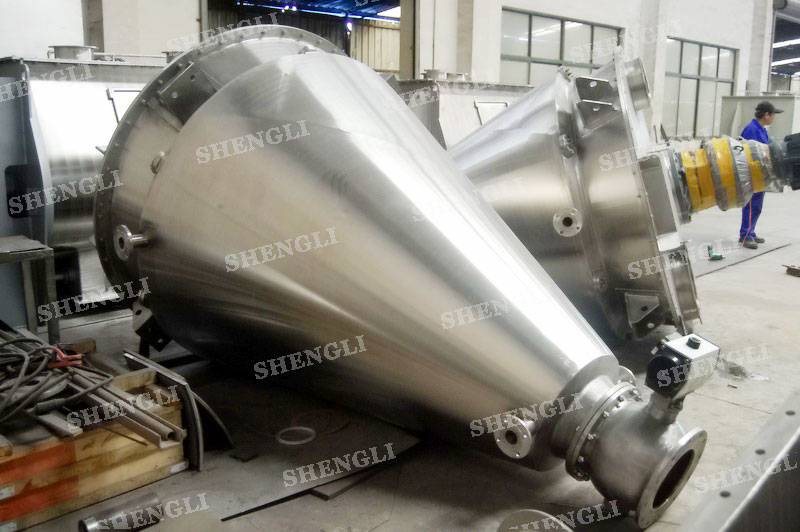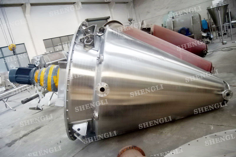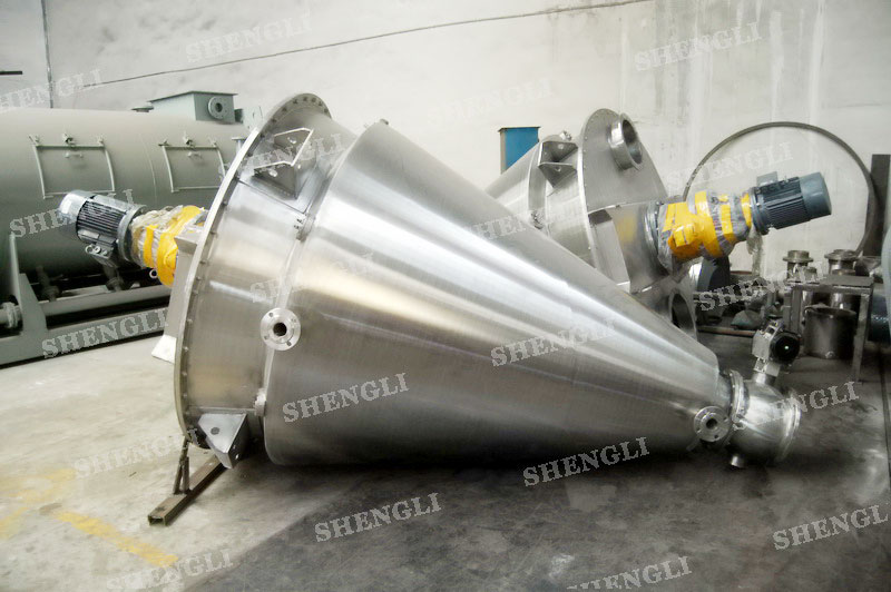 描述:錐形攪拌機內部安裝非對稱傾斜螺旋,雙螺旋自身旋轉,提升物料,并有公轉減速箱驅動,沿錐體中心軸公轉,360度攪拌物料,擁有非破壞性攪拌以及快速且無殘留卸料的特點。該設備配置內加熱夾套、配置氣動球面閥,內外表面做亞光處理。
