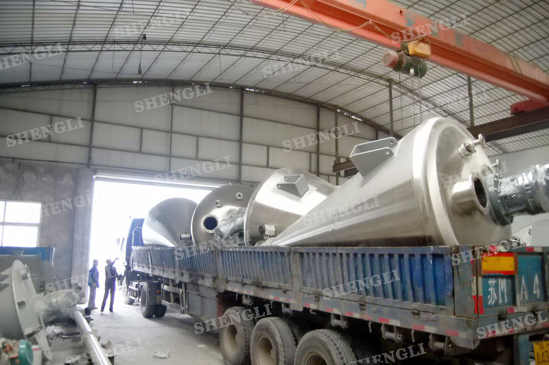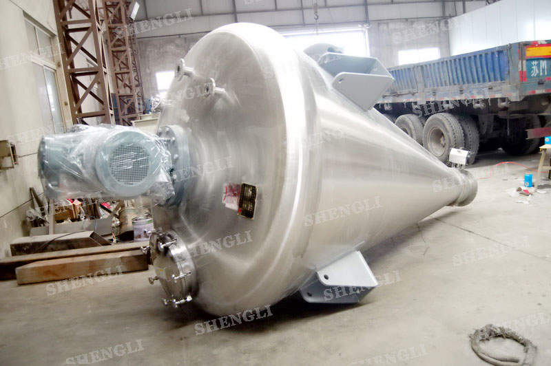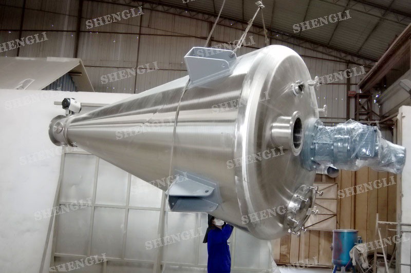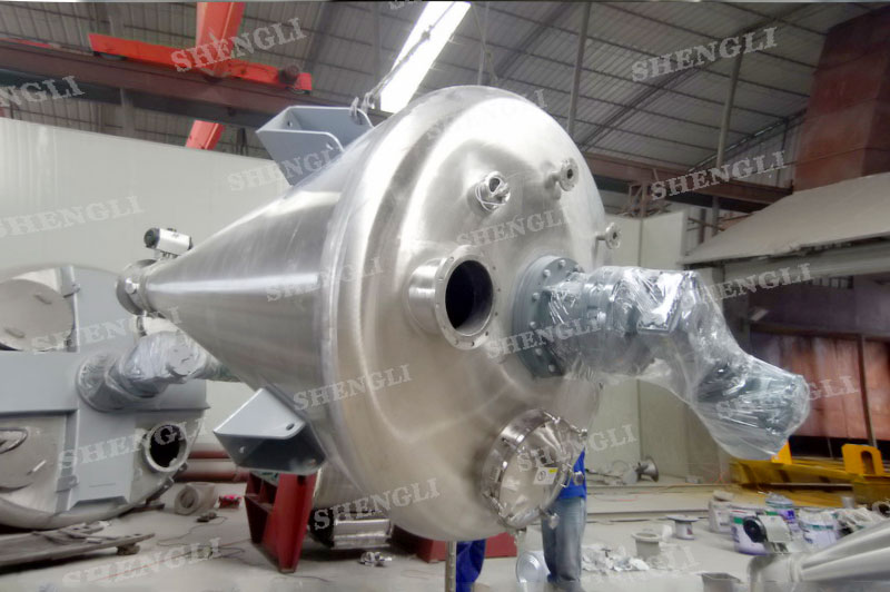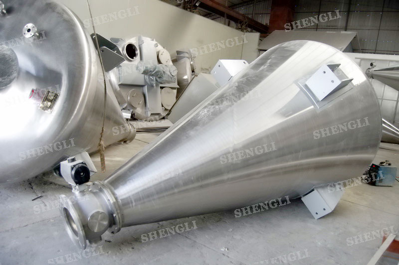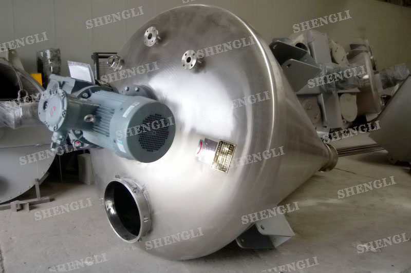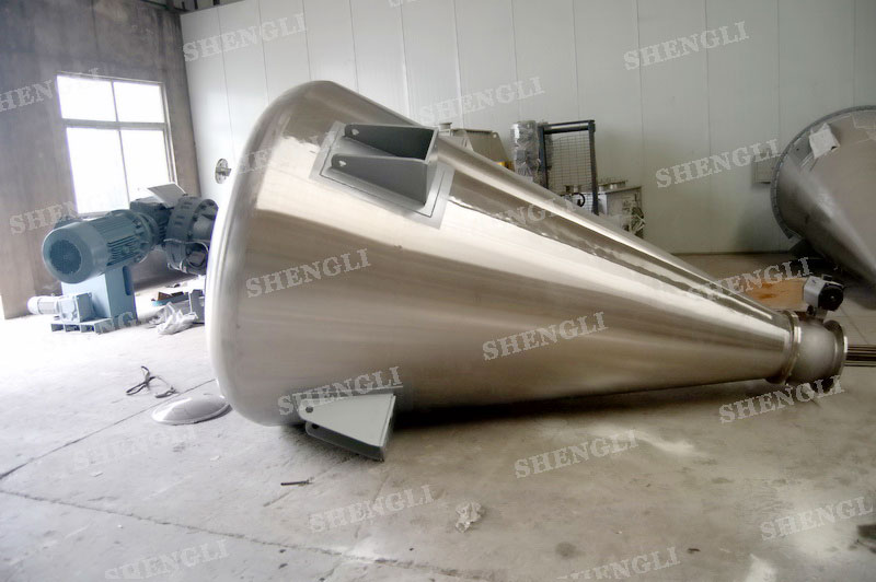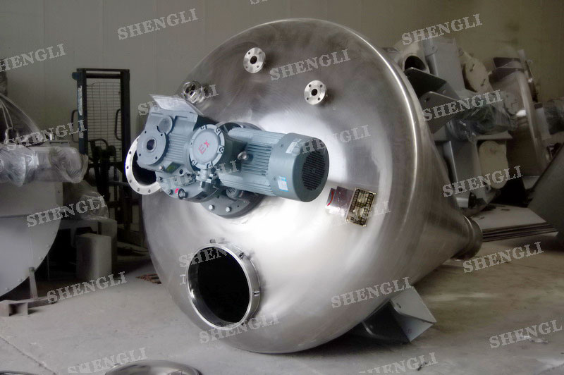 描述:錐形雙螺旋混合機內(nèi)部安裝非對稱傾斜螺旋,雙螺旋自身旋轉(zhuǎn),提升物料,并有公轉(zhuǎn)減速箱驅(qū)動,沿錐體中心軸公轉(zhuǎn),360度攪拌物料,擁有非破壞性攪拌以及快速且無殘留卸料的特點。該設(shè)備采用上蓋一體式,選用耐壓橢圓封頭結(jié)構(gòu)、配置氣動球面閥,錐形中心軸噴液,內(nèi)表面做鏡面處理、外表面亞光處理,架設(shè)人孔、觀察口、排氣口等設(shè)置。