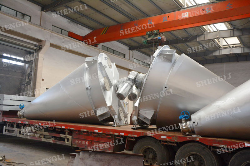 描述:雙螺旋攪拌機(jī)內(nèi)部安裝非對(duì)稱傾斜螺旋,雙螺旋自身旋轉(zhuǎn),提升物料,并有公轉(zhuǎn)減速箱驅(qū)動(dòng),沿錐體中心軸公轉(zhuǎn),360度攪拌物料,擁有非破壞性攪拌以及快速且無(wú)殘留卸料的特點(diǎn)。該設(shè)備配置自轉(zhuǎn)、公轉(zhuǎn)一體式驅(qū)動(dòng),內(nèi)設(shè)中心軸線噴液噴頭,筒體出料口配置球面閥。
