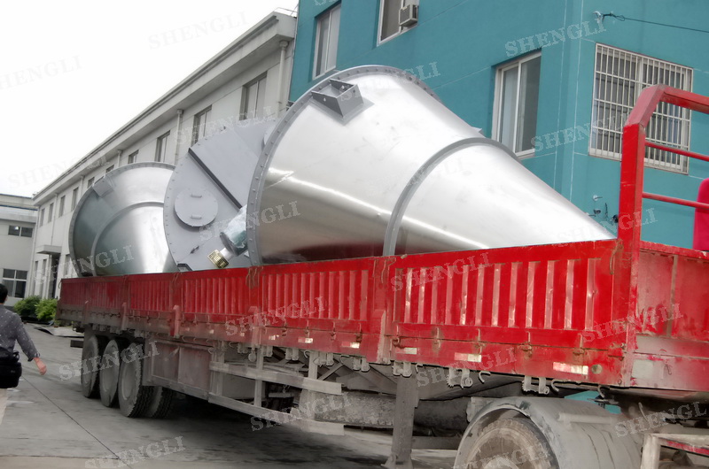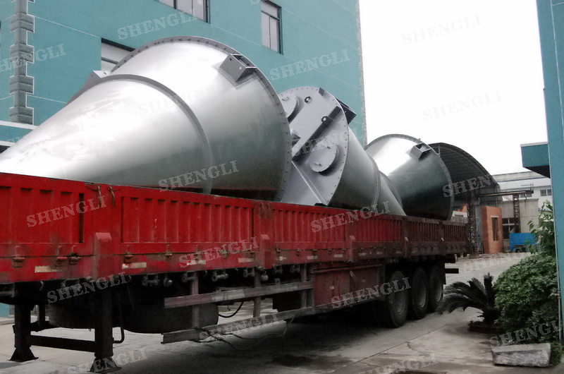描述:錐形攪拌設(shè)備內(nèi)部安裝非對稱傾斜螺旋,雙螺旋自身旋轉(zhuǎn),提升物料,并有公轉(zhuǎn)減速箱驅(qū)動,沿錐體中心軸公轉(zhuǎn),364度攪拌物料,擁有非破壞性攪拌以及快速且無殘留卸料的特點。該設(shè)備配置自轉(zhuǎn)、公轉(zhuǎn)分體驅(qū)動,內(nèi)外表面做拉絲處理,配置錐體中軸線噴液噴頭,筒體底部配置氣動球面閥,開設(shè)投料口、排氣口等。