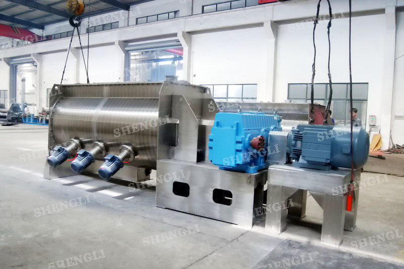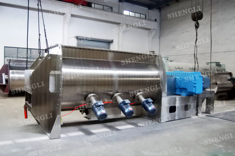 工作原理:槳葉攪拌機采用U型筒體,內(nèi)設平行主軸,主軸上安裝若干傾角式槳葉刀,不僅能快速高效的攪拌物料,且不會破壞物料,不會卡料。