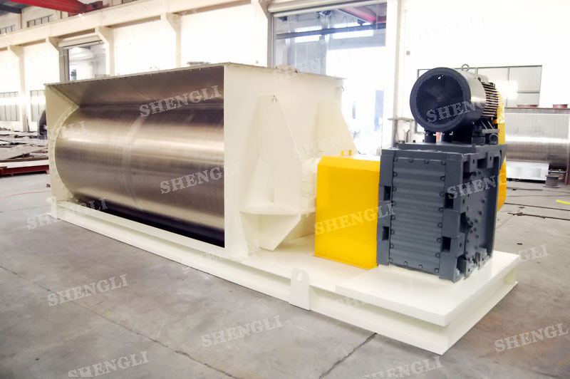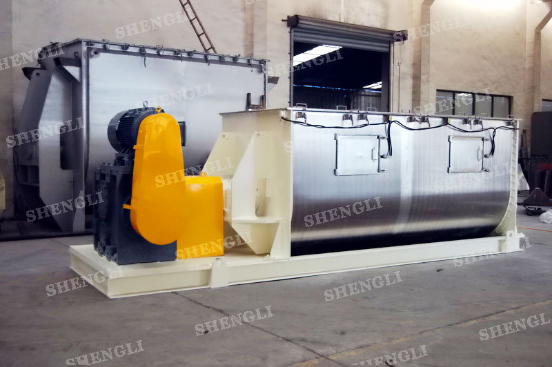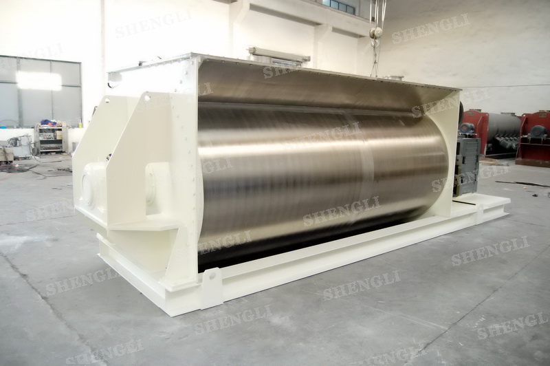 工作原理:臥式攪拌機(jī)采用U型筒體,內(nèi)設(shè)平行主軸,主軸上安裝若干傾角式槳葉刀,不僅能快速高效的攪拌物料,且不會破壞物料,不會卡料。