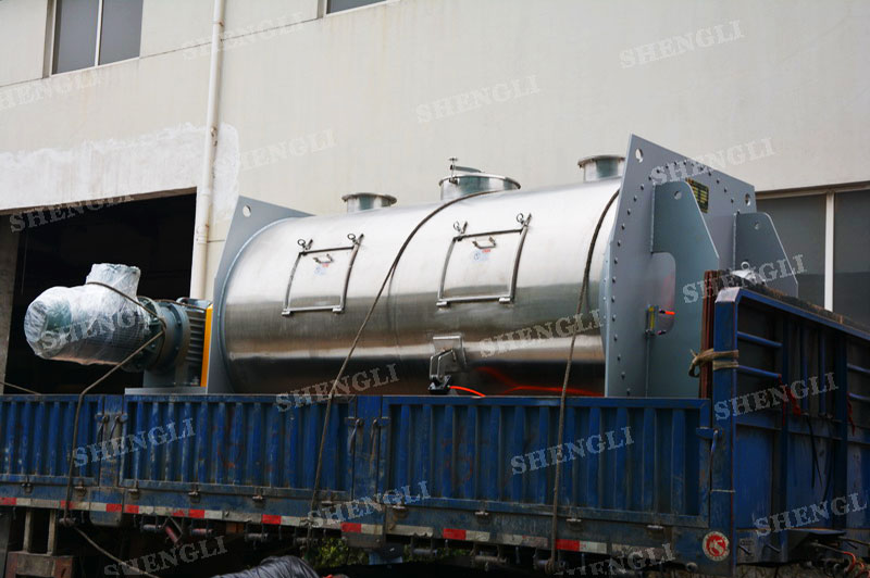 工作原理:犁刀混合機(jī)采用臥式圓柱筒體,內(nèi)設(shè)平行主軸,主軸上安裝若干犁式刀頭,通過較快的旋轉(zhuǎn)速度,分割、重合物料,實現(xiàn)快速攪拌的功能,常結(jié)合1500-3000轉(zhuǎn)高速剪切飛刀相互作用。