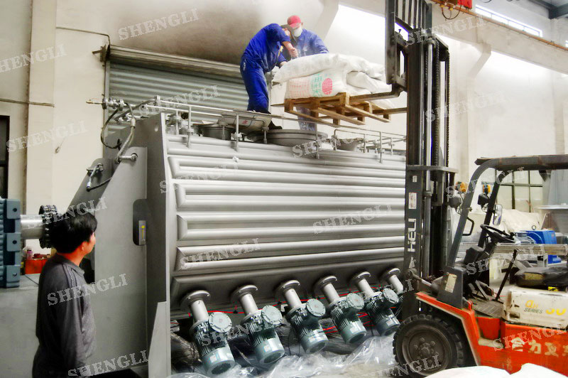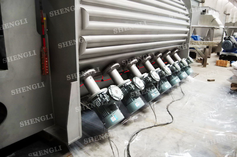 設(shè)備配置:配置K系列減速機(jī),皮帶式安裝;搭載十四臺3000轉(zhuǎn)每分鐘的高速飛刀;筒體外設(shè)導(dǎo)熱介質(zhì)盤管夾套;出料口采用雙氣動翻板閥;主軸與飛刀主軸采用氣密封;設(shè)備架設(shè)多組噴液系統(tǒng);筒體上設(shè)氣動在線取樣閥;設(shè)備內(nèi)表面鏡面拋光、外表面噴砂亞光。