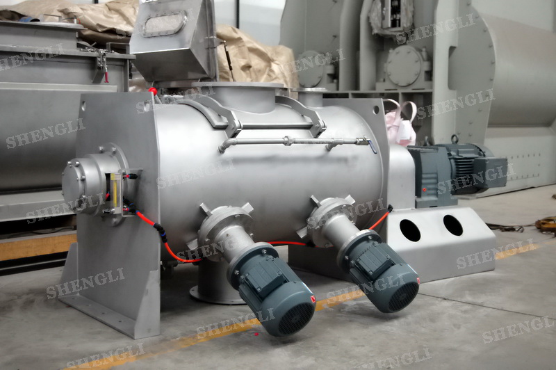 工作原理:犁刀式混合機采用臥式圓柱筒體,內(nèi)設(shè)平行主軸,主軸上安裝若干犁式刀頭,通過較快的旋轉(zhuǎn)速度,分割、重合物料,實現(xiàn)快速攪拌的功能,常結(jié)合1500-3000轉(zhuǎn)高速剪切飛刀相互作用。