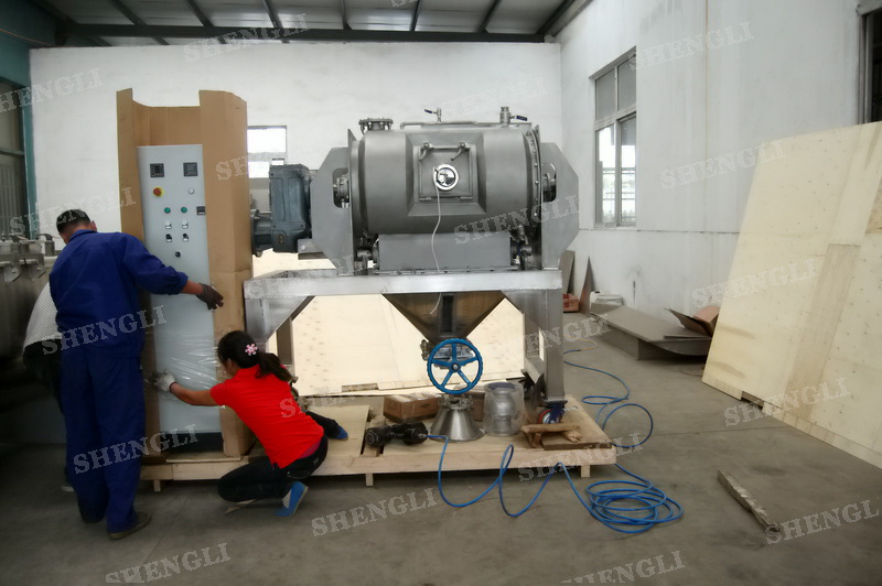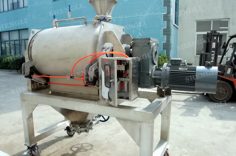 設(shè)備配置:配置F系列減速機(jī),平行安裝;筒體外設(shè)導(dǎo)熱介質(zhì)夾套;開(kāi)設(shè)快開(kāi)式檢修門;出料口采用氣動(dòng)翻板閥;設(shè)備主軸采用氣密封;筒內(nèi)設(shè)加液噴頭;設(shè)備內(nèi)表面鏡面拋光、外表面噴砂亞光。