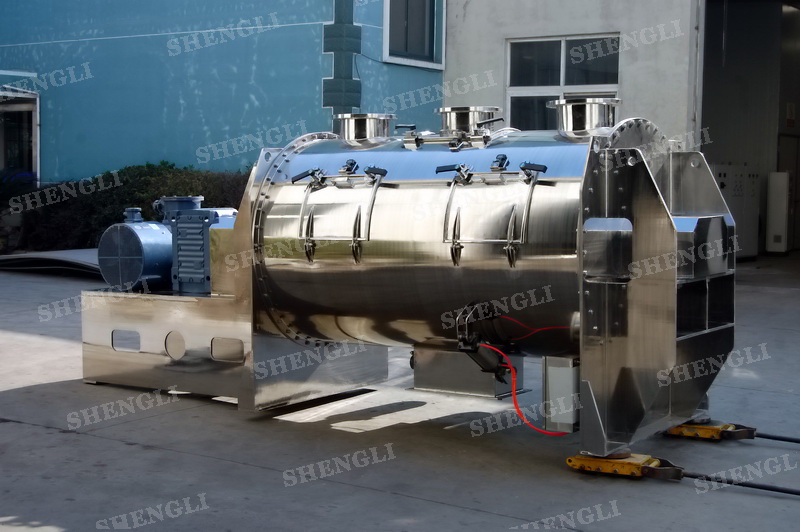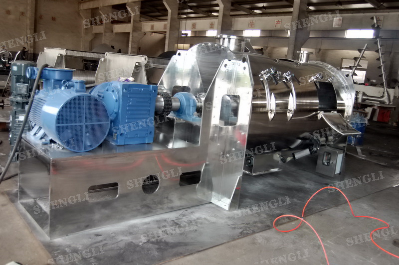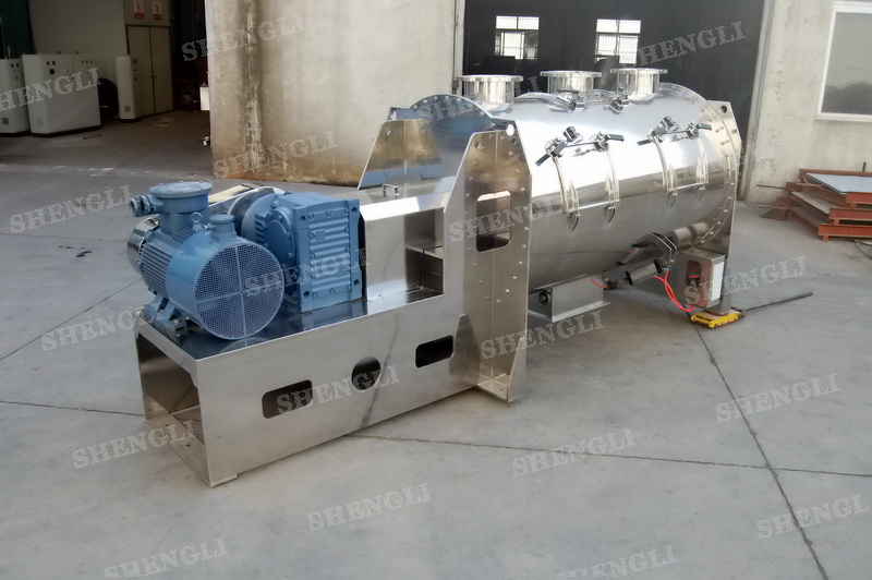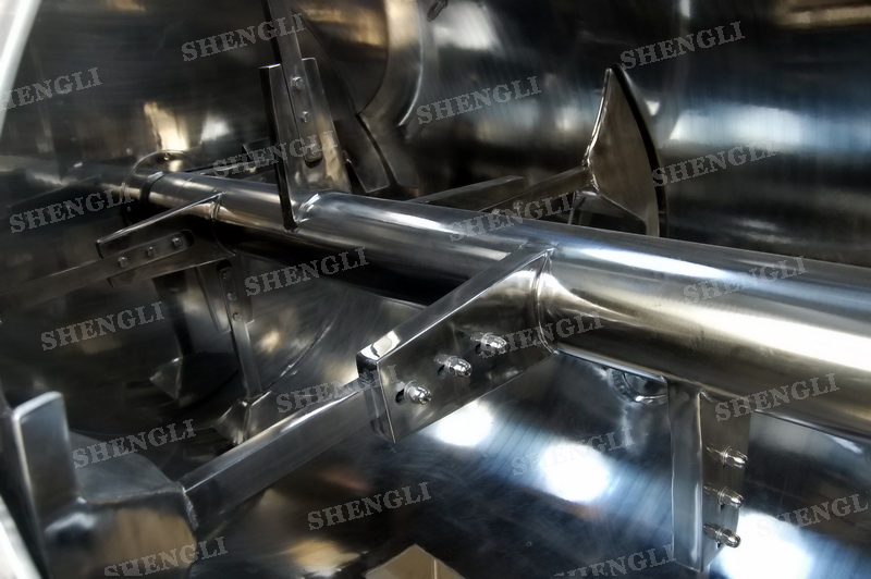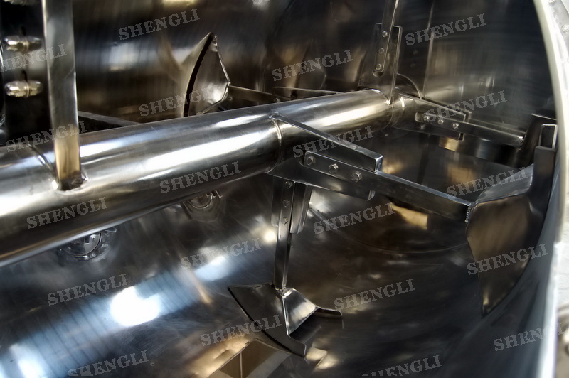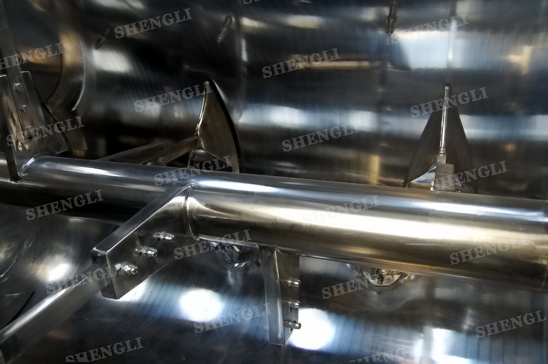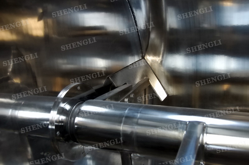 工作原理:犁刀攪拌機(jī)采用臥式圓柱筒體,內(nèi)設(shè)平行主軸,主軸上安裝若干犁式刀頭,通過較快的旋轉(zhuǎn)速度,分割、重合物料,實(shí)現(xiàn)快速攪拌的功能,常結(jié)合1500-3000轉(zhuǎn)高速剪切飛刀相互作用。