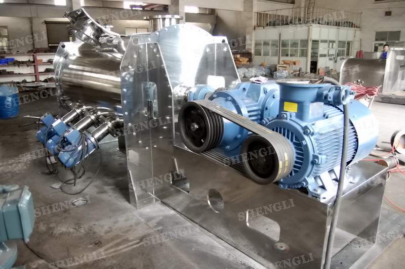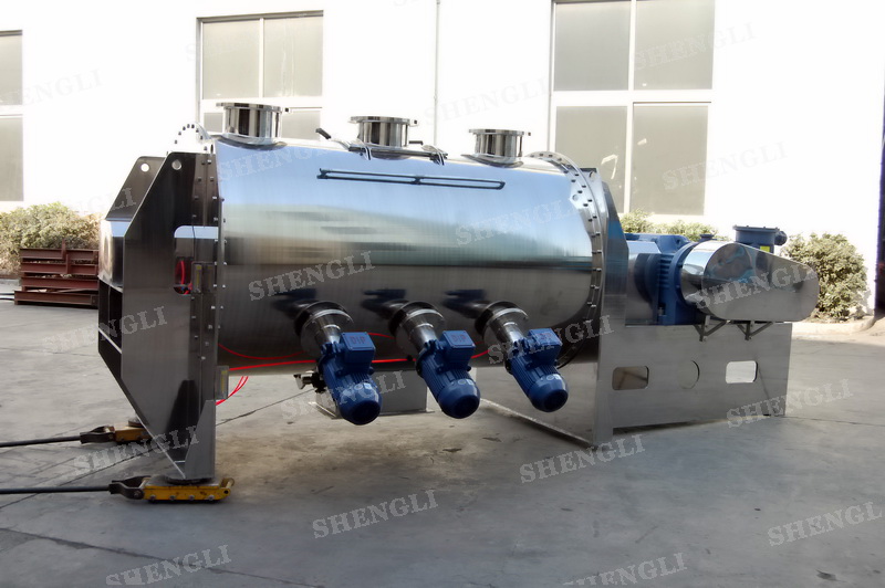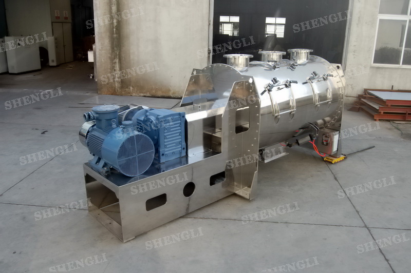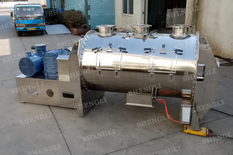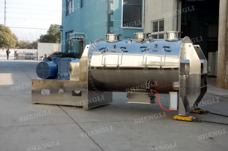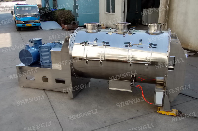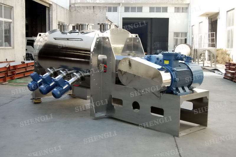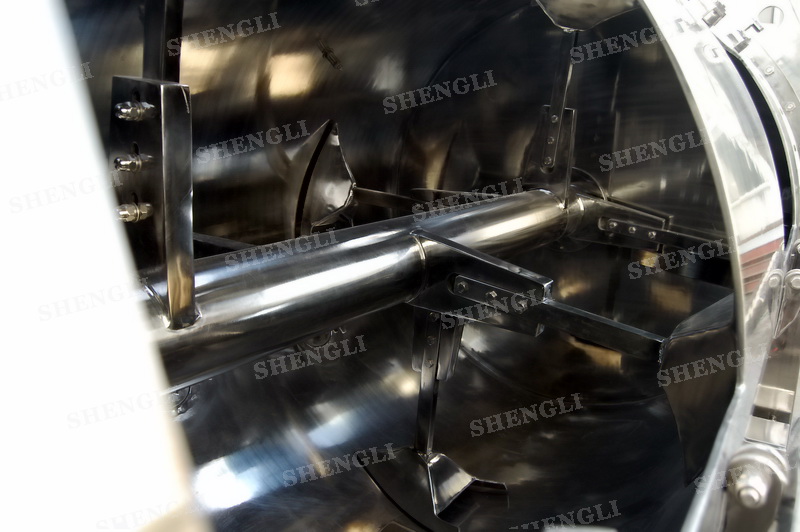 工作原理:犁刀攪拌機(jī)采用臥式圓柱筒體,內(nèi)設(shè)平行主軸,主軸上安裝若干犁式刀頭,通過較快的旋轉(zhuǎn)速度,分割、重合物料,實(shí)現(xiàn)快速攪拌的功能,常結(jié)合1500-3000轉(zhuǎn)高速剪切飛刀相互作用。