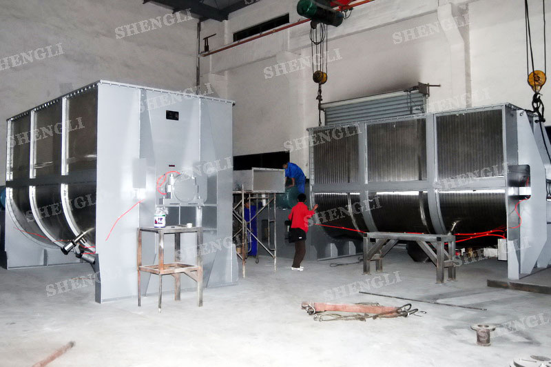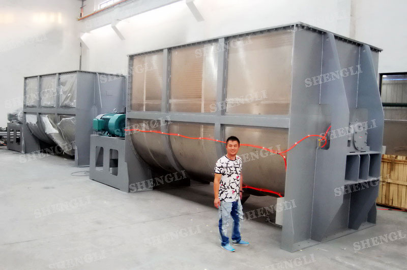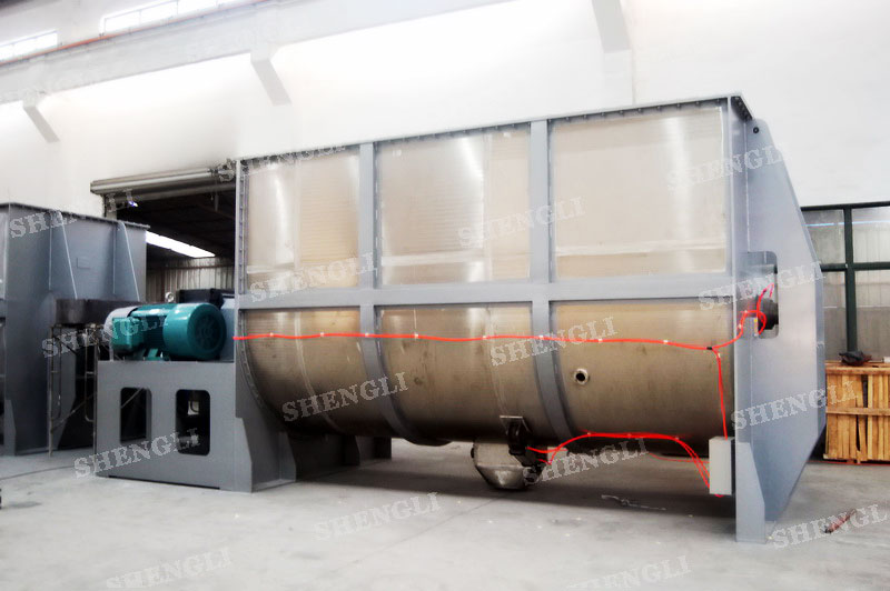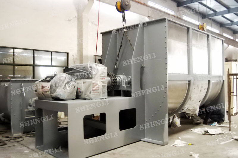 工作原理:螺帶大型混合機(jī)采用U型筒體,內(nèi)裝平行主軸,主軸上安裝正反雙向的盤(pán)條螺帶,不同維度螺帶分內(nèi)螺帶與外螺帶,物料在螺帶的驅(qū)使下反復(fù)參混,能夠快速高效的混合。