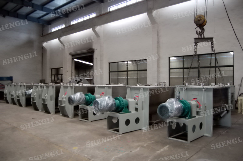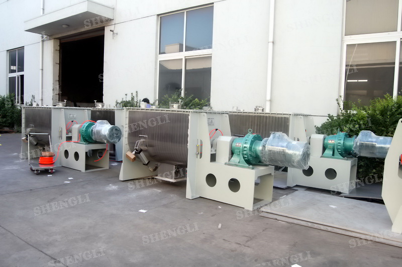 工作原理:螺帶混合機采用U型筒體,內(nèi)裝平行主軸,主軸上安裝正反雙向的盤條螺帶,不同維度螺帶分內(nèi)螺帶與外螺帶,物料在螺帶的驅(qū)使下反復參混,能夠快速高效的混合。