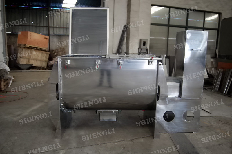 工作原理:螺帶臥式混合機(jī)采用U型筒體,內(nèi)裝平行主軸,主軸上安裝正反雙向的盤條螺帶,不同維度螺帶分內(nèi)螺帶與外螺帶,物料在螺帶的驅(qū)使下反復(fù)參混,能夠快速高效的混合。