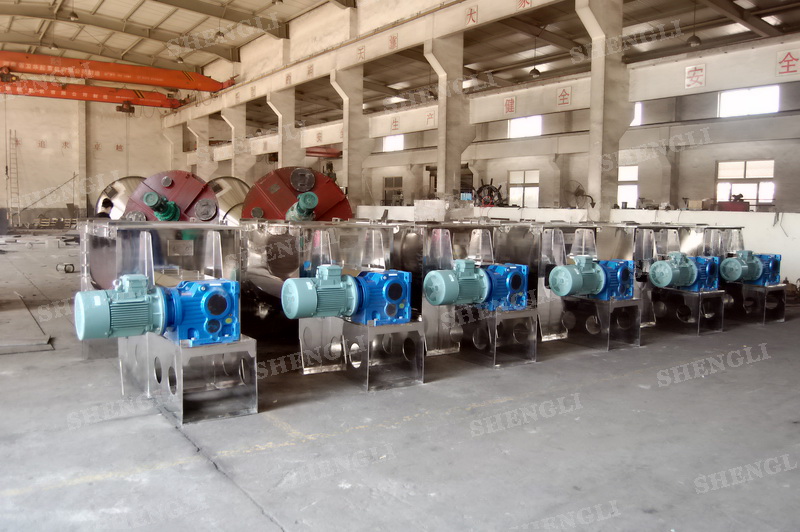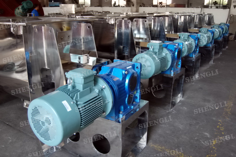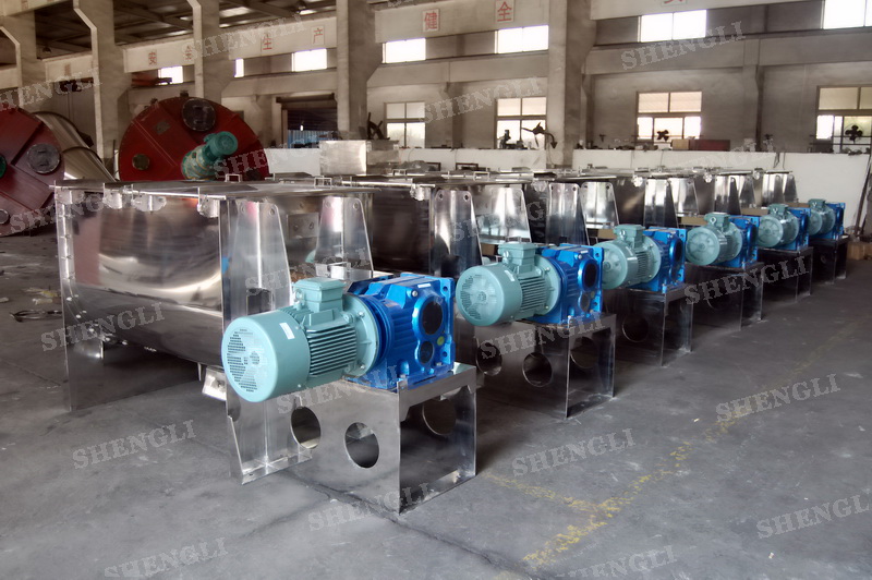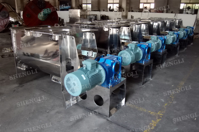 工作原理:臥式螺帶混合機(jī)采用U型筒體,內(nèi)裝平行主軸,主軸上安裝正反雙向的盤(pán)條螺帶,不同維度螺帶分內(nèi)螺帶與外螺帶,物料在螺帶的驅(qū)使下反復(fù)參混,能夠快速高效的混合。