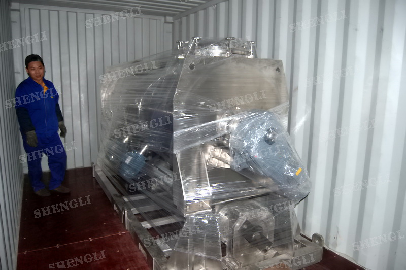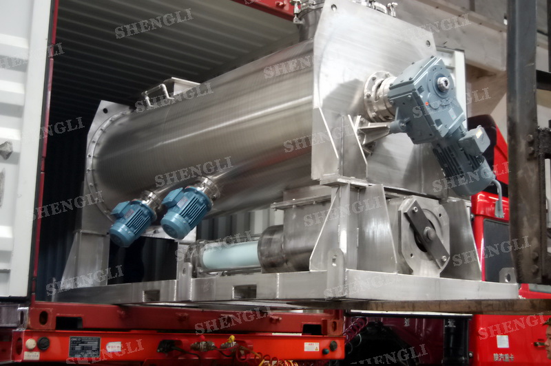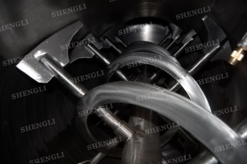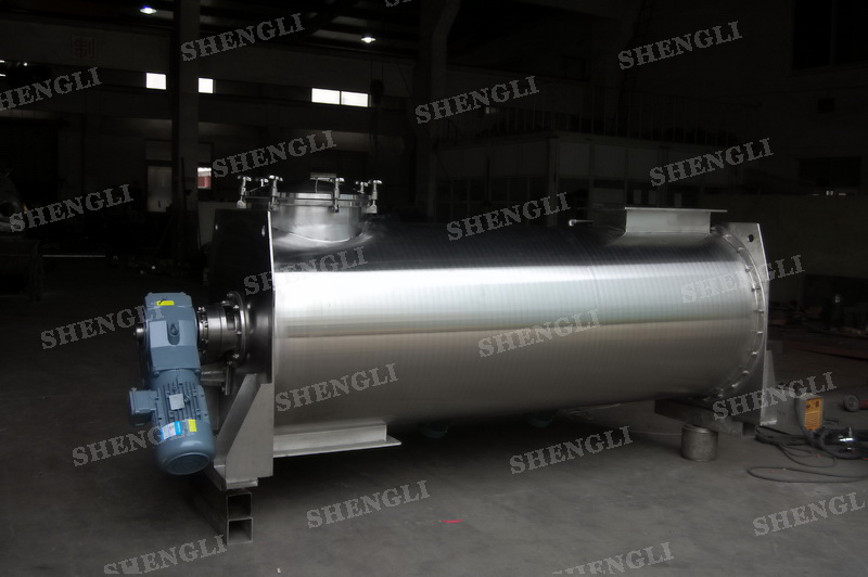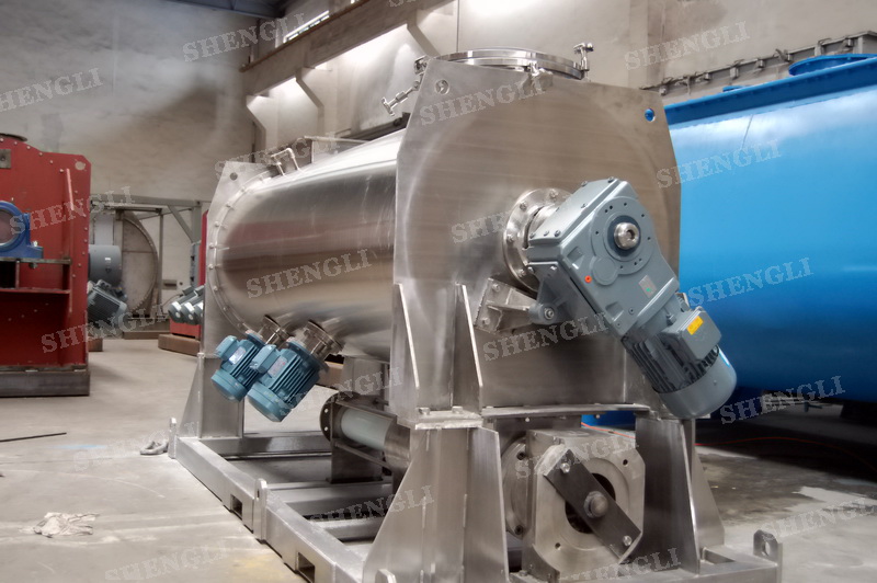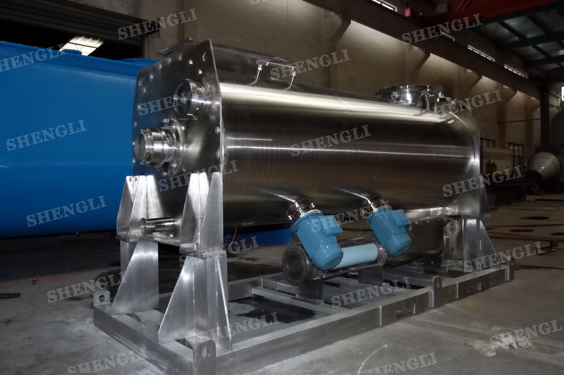 工作原理:螺帶攪拌設(shè)備采用U型筒體,內(nèi)裝平行主軸,主軸上安裝正反雙向的盤條螺帶,不同維度螺帶分內(nèi)螺帶與外螺帶,物料在螺帶的驅(qū)使下反復(fù)參混,能夠快速高效的混合。