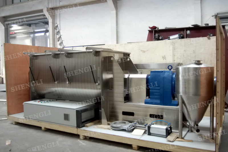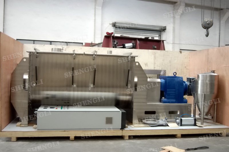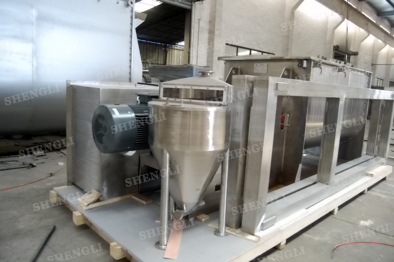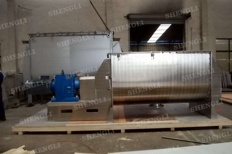 工作原理:螺帶混合機采用U型筒體,內(nèi)裝平行主軸,主軸上安裝正反雙向的盤條螺帶,不同維度螺帶分內(nèi)螺帶與外螺帶,物料在螺帶的驅(qū)使下反復參混,能夠快速高效的混合。