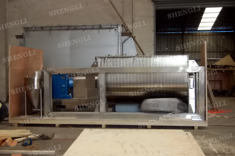 設備配置:配置R系列減速機、直線安裝;桶蓋為快開式半開門,架設投料安全柵格;設備主軸采用氣密封;設備內(nèi)表面鏡面拋光、外表面拉絲拋光。
