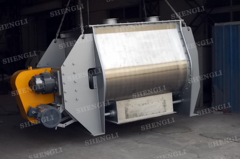 工作原理:無重力雙軸攪拌機采用雙U型筒體,內(nèi)裝平行的雙主軸,主軸設(shè)有對稱的多組槳葉,其雙軸的運行軌跡部分重合形成嚙合空間,雙軸在受雙電機同步驅(qū)動,同步的對稱向外翻攪物料,致使物料能夠達到瞬間失重點,該設(shè)備具備高效物料無差別的混合能力。