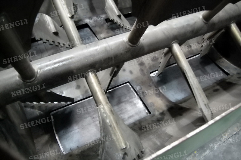 工作原理:雙軸攪拌設(shè)備采用雙U型筒體,內(nèi)裝平行的雙主軸,主軸設(shè)有對稱的多組槳葉,其雙軸的運行軌跡部分重合形成嚙合空間,雙軸在受雙電機同步驅(qū)動,同步的對稱向外翻攪物料,致使物料能夠達到瞬間失重點,該設(shè)備具備高效物料無差別的混合能力。